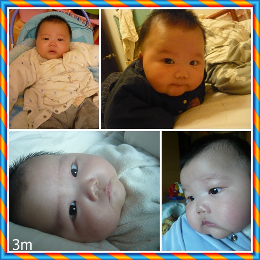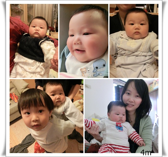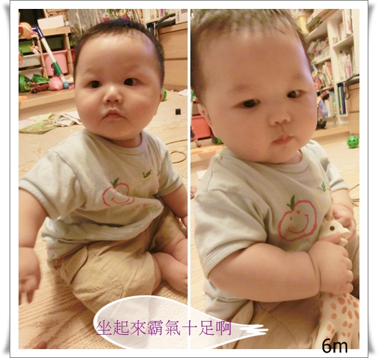 yoyo真的是一個很棒的小孩,不怎麼哭鬧,稍微安撫即可入睡,膽子很大,屬於冷靜派的。雖然長得有點呆,表情常像吃了苦瓜,不過笑起來憨厚憨厚,配上胖胖臉與肥滋滋的腿庫,可愛到不行,不時被路人摸來摸去,帶出門很拉風。更重要的是,喜歡吃~~不管馬麻煮的是啥,全部吃光光,大大滿足馬麻的成就感啊 呵呵呵