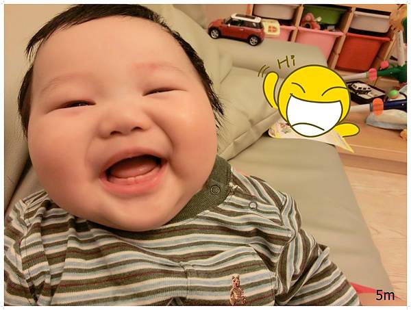 還有很會揀地上東西,不管多小東西都揀得起來(小動作發展還不錯),只是下一秒鐘就是塞到嘴裏,尤其衛生紙是他的最愛,拿到後得意的笑,撕開後怕拔麻搶走,馬上以迅雷不及掩耳速度吃掉,還裝沒事樣。